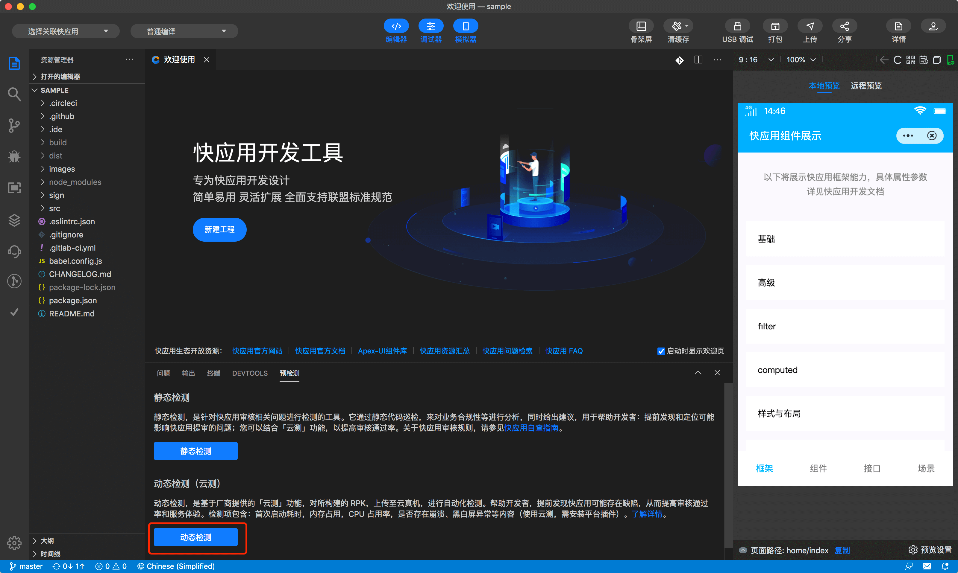 使用快应用开发工具测试快应用,要安装 1.8.0 或更高版本 快应用开发工具